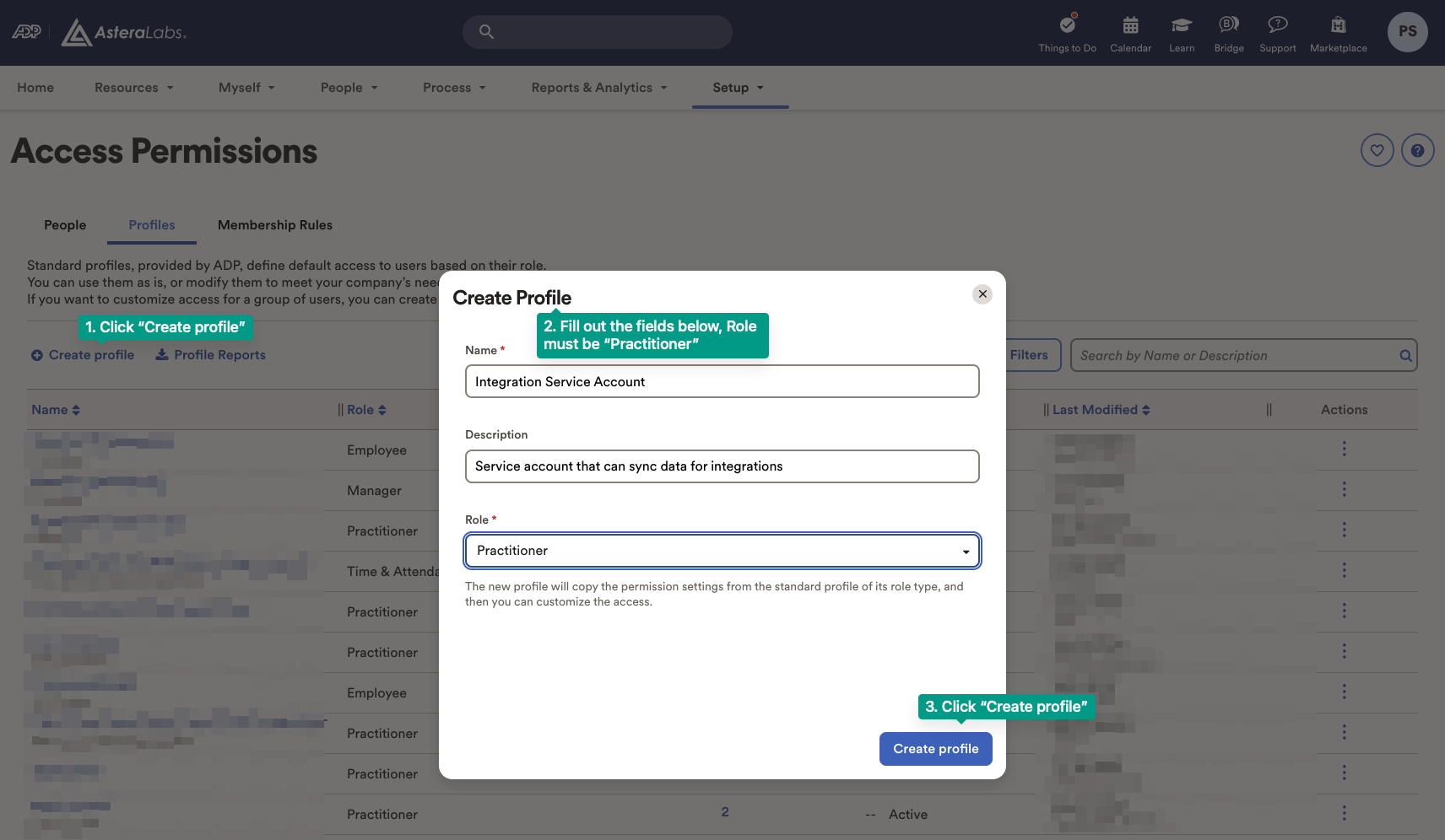 - In your ADP Workforce Now account, go to Setup and find Access Permissions.