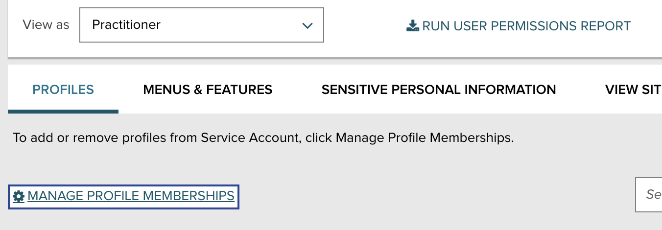 Now that the Service User has the right Profile associated, verify that the Menus & Features and Sensitive Personal Information for this user match what you set up in the Profile earlier