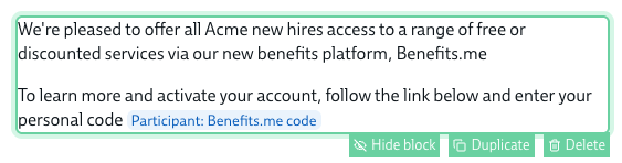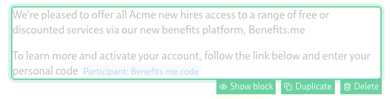 Hover over each block in the central section that you wish to send to this audience, and click Show block