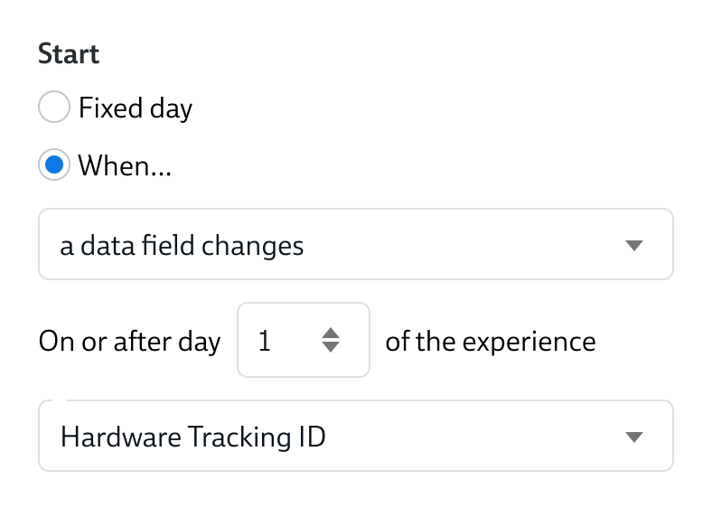The simplest start option is to determine a specific day on your experience timeline for the Task, Message or Automation to start.