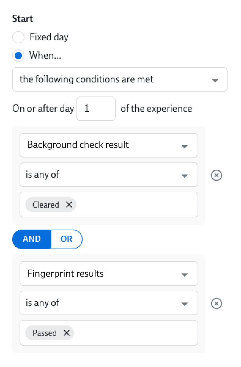 - Send a "Congratulations, you're cleared to start" message when the new hire has passed all their pre-hire start checks