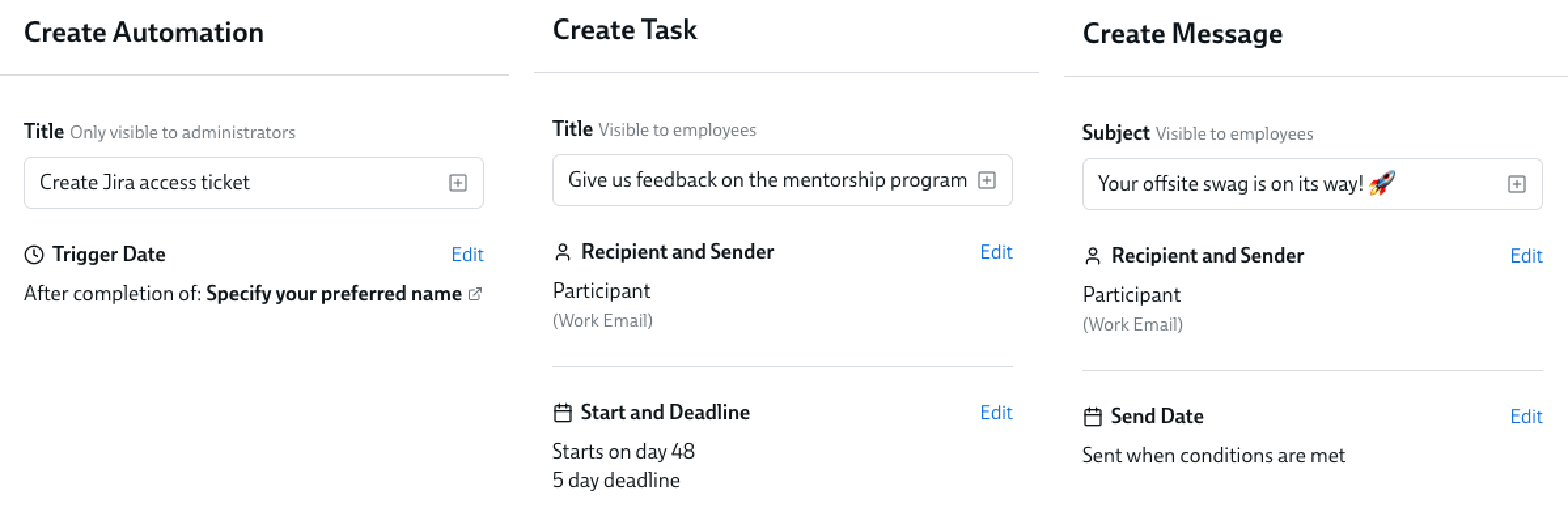 There are multiple ways to determine when in your experience each Task, Message or Automation will start:
