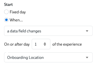 - When a data field changes – for instance when the "Onboarding location" changes